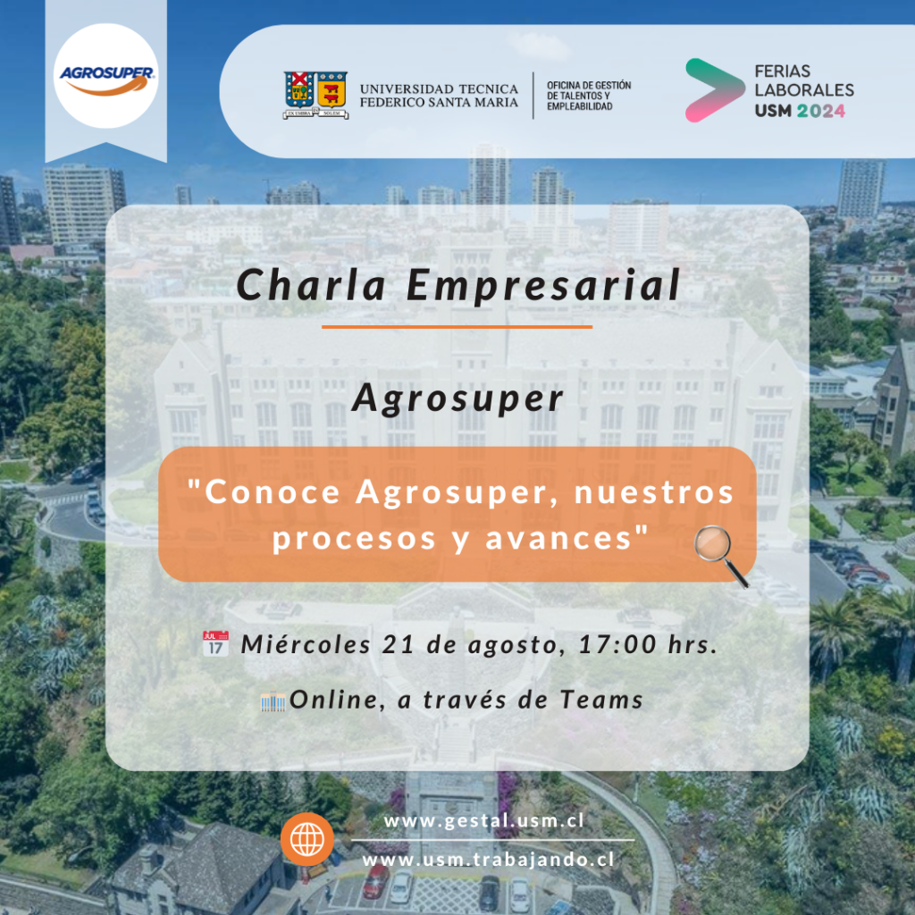 ¡Los invitamos a participar del la Charla "Conoce Agrosuper, nuestros procesos y avances" que Agrosuper trae para ti! 💼