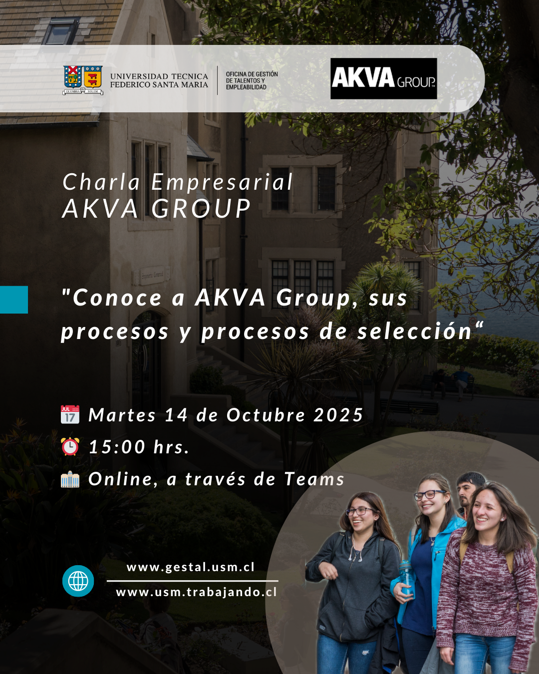 ¡Los invitamos a participar de la Charla AKVA Group I "Conoce a AKVA Group, sus procesos y procesos de selección" que la empresa trae para ti! 💼