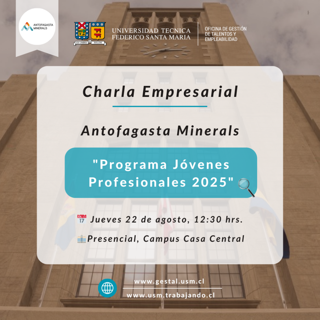 ¡Los invitamos a participar del la Charla "Programa Jóvenes Profesionales 2025" que Antofagasta Minerals trae para ti! 💼