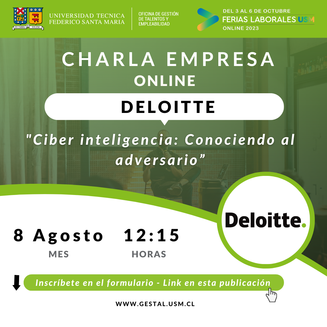 ¡Talentos! Los invitamos a participar de la charla que nos trae Deloitte para las Ferias Laborales USM 2023!