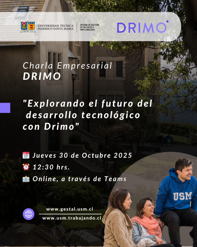 ¡Los invitamos a participar de la Charla DRIMO I "Explorando el futuro del desarrollo tecnológico con Drimo" que la empresa trae para ti! 💼