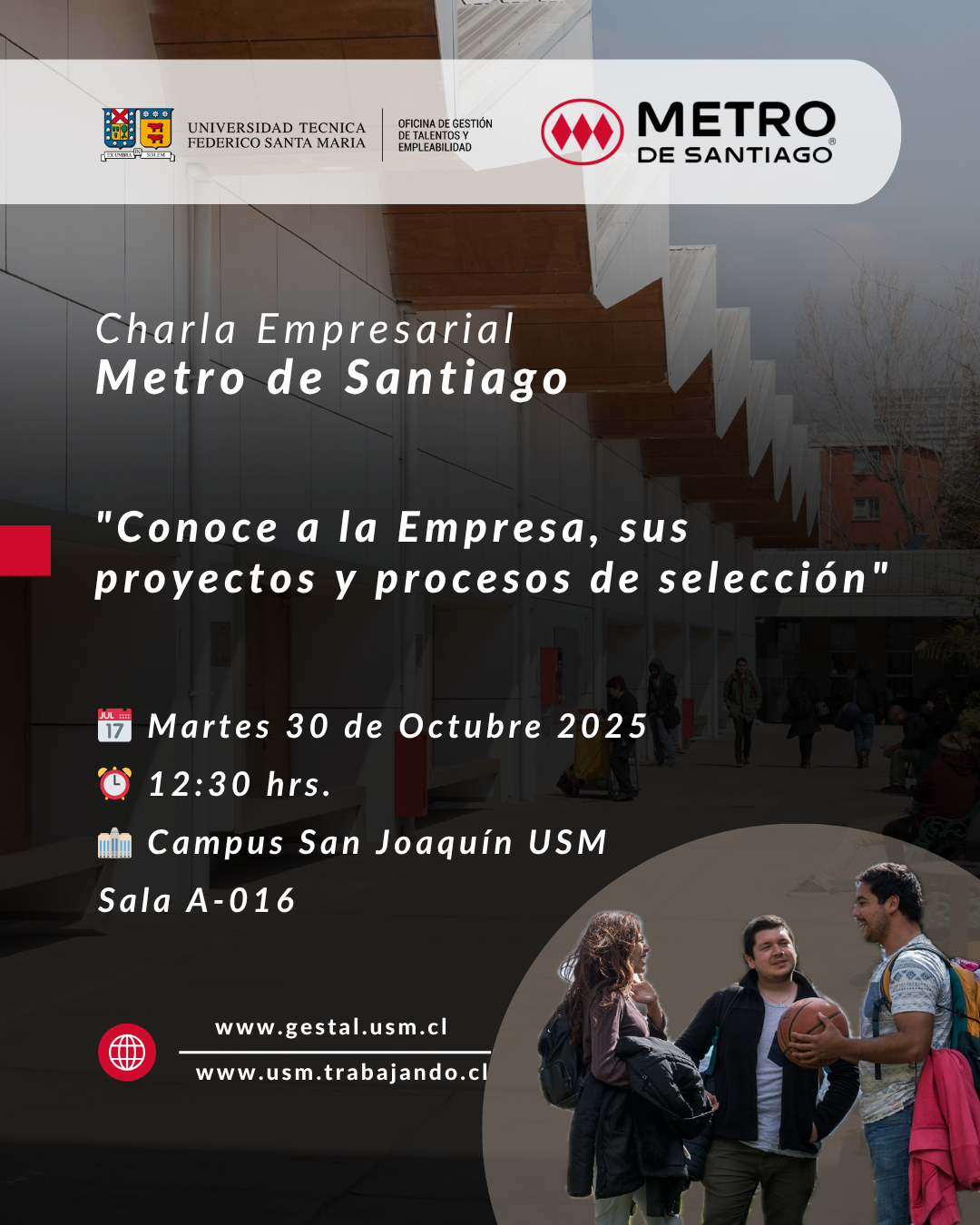 ¡Los invitamos a participar de la Charla METRO I "Conoce a la Empresa, sus proyectos y procesos de selección" que la empresa trae para ti! 💼