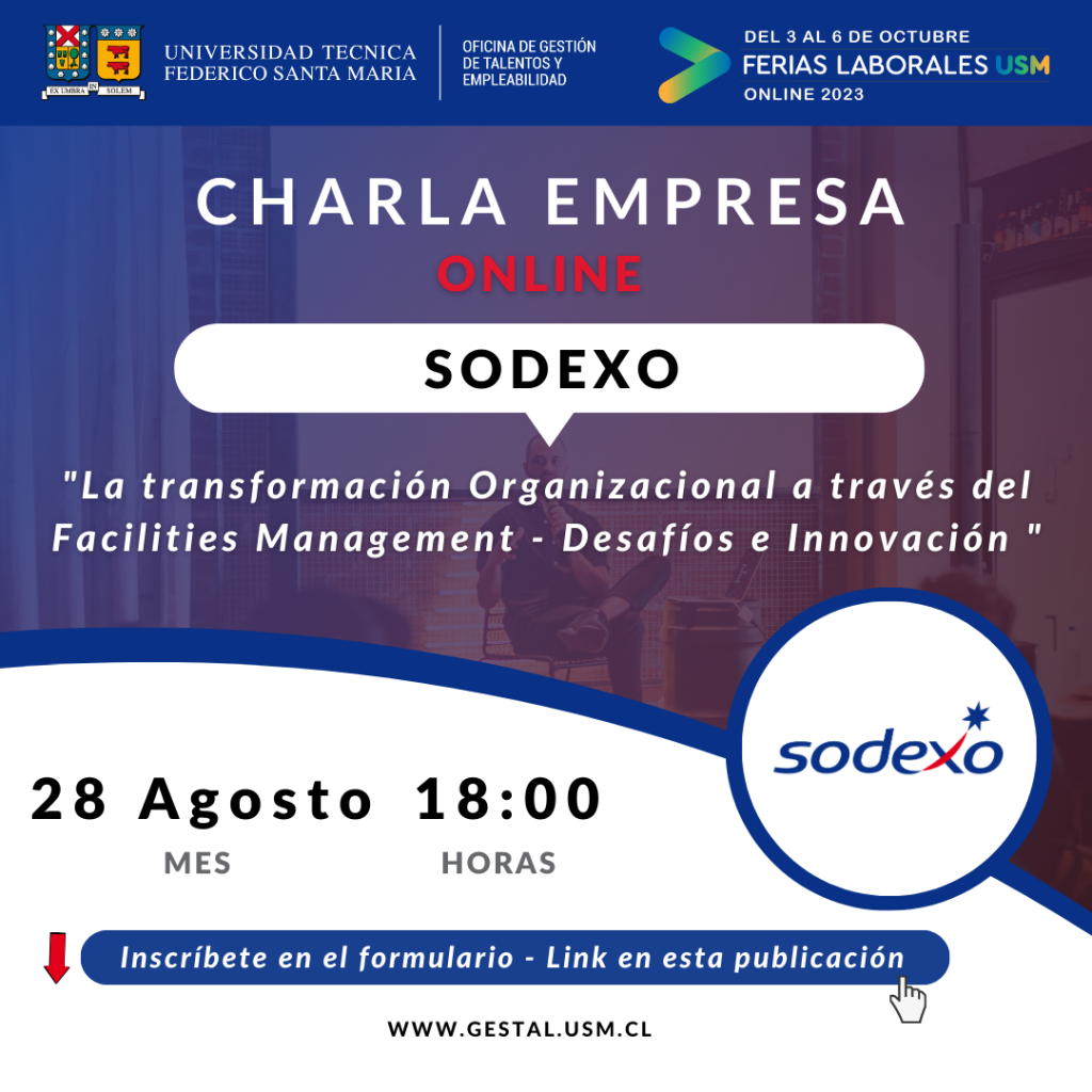 🤩 ¡Talentos! Los invitamos a participar de la charla que nos trae Sodexo para las Ferias Laborales USM 2023!