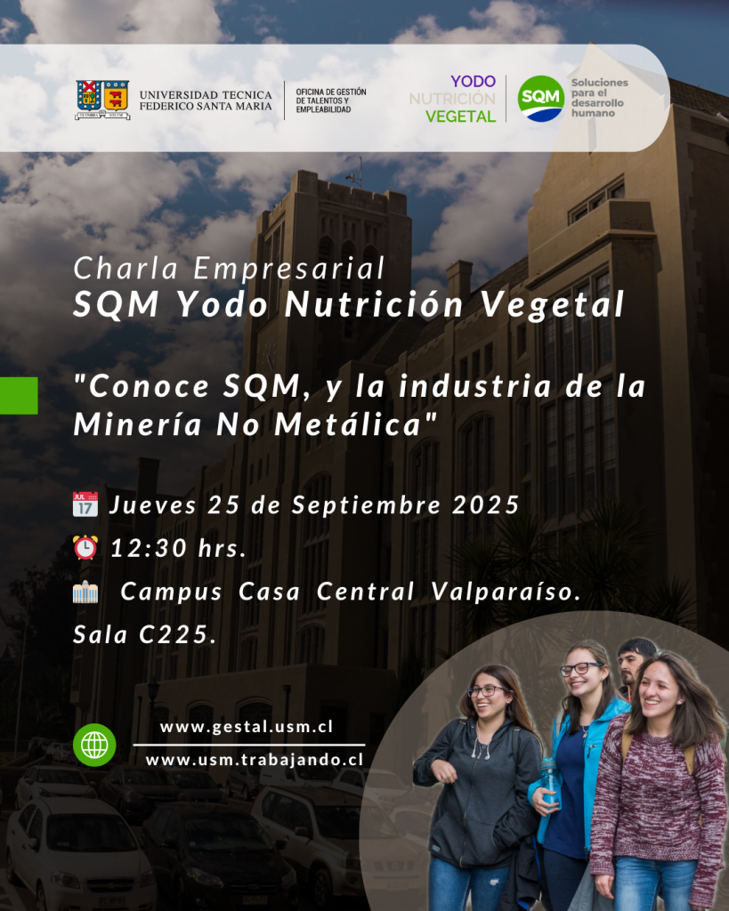 ¡Los invitamos a participar de la Charla SQM I "Conoce SQM, y la industria de la Minería No Metálica" que la empresa trae para ti! 💼