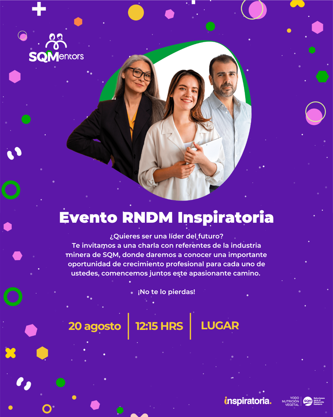 ¡Los invitamos a participar del la Charla “Programa de Mentores SQM + Evento RNDM Inspiratoria” que SQM Yodo Nutrición Vegetal trae para ti! 💼