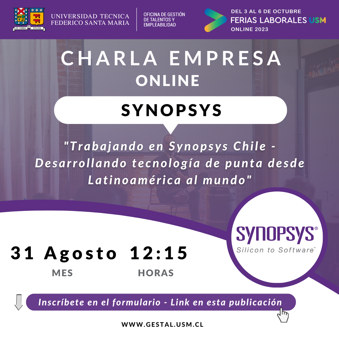 🤩 ¡Talentos! Los invitamos a participar de la charla que nos trae Synopsys para las Ferias Laborales USM 2023!
