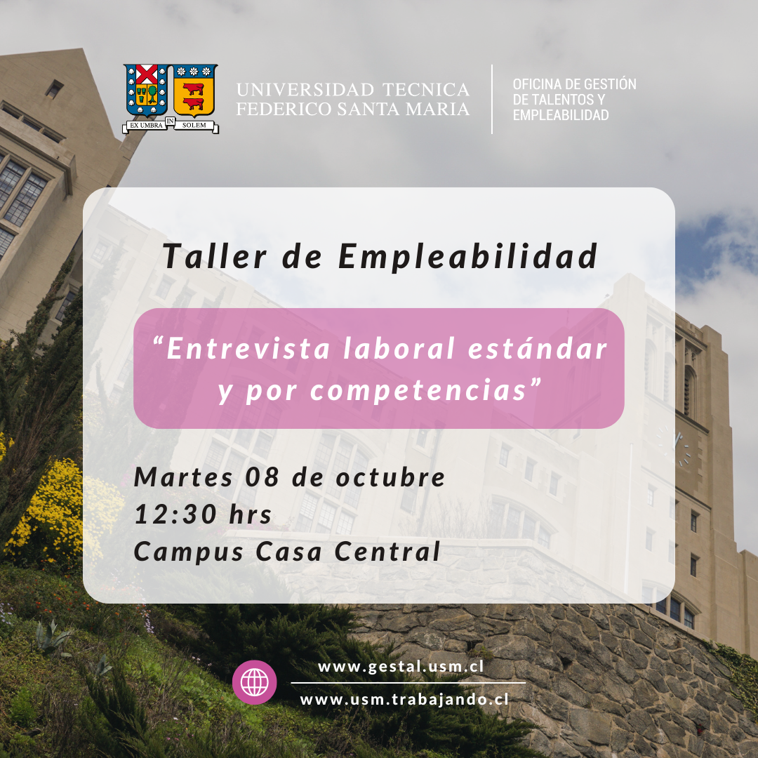 Martes 08 de octubre 2024 | 12:30 hrs | Entrevista laboral estándar y por competencias I Valparaíso CC