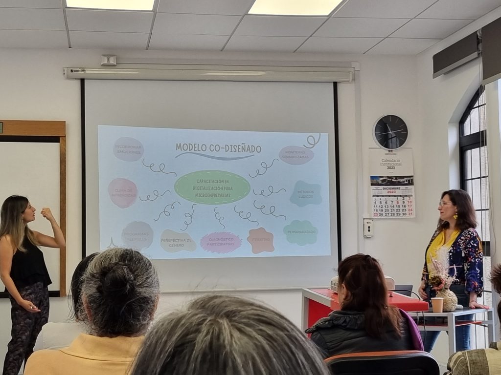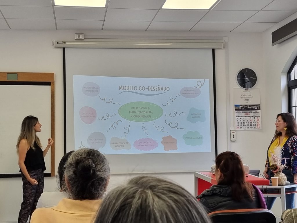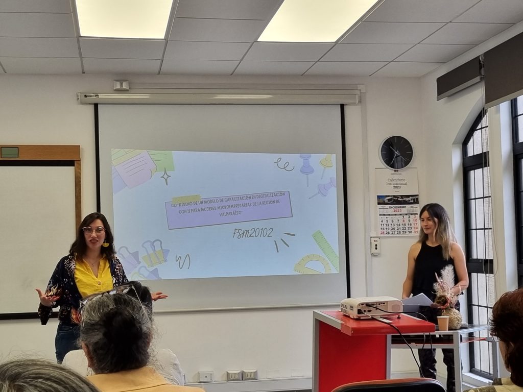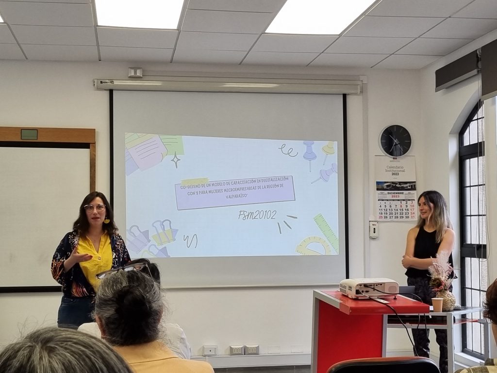 En el marco de la adjudicación de los Fondos Concursables Vcm 2023-2 en la categoría Vinculación con el Sector Productivo I+D+i+e del Proyecto Mineduc FSM20102, el Departamento de Estudios Humanísticos llevó a cabo un proyecto titulado «Co-Diseño de un modelo de capacitación en digitalización con y para mujeres microempresarias de la Región de Valparaíso” , que tuvo como finalidad compartir los resultados del proyecto, socializar el modelo co-diseñado y celebrar el trabajo multisectorial y multiestamental realizado durante las tres sesiones previas.