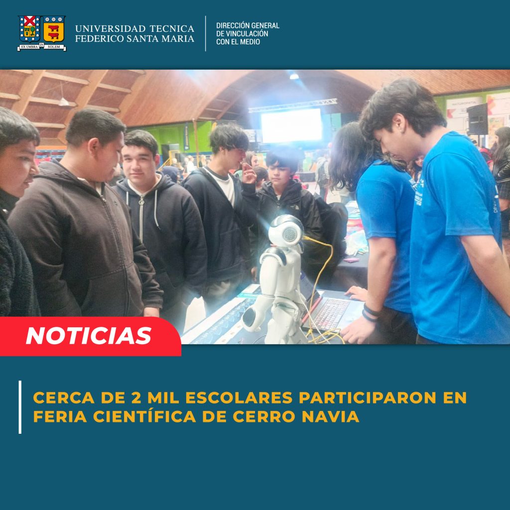 El pasado 12 de octubre, la carrera de Ingeniería Civil Telemática de la Universidad Técnica Federico Santa María Campus San Joaquín en conjunto con el programa de Responsabilidad Social Universitaria de la Dirección General de Vinculación con el Medio participaron de una feria científica donde cerca de 2 mil estudiantes de diversos establecimientos educacionales de Cerro Navia asistieron al encuentro, el cual tuvo lugar en el gimnasio municipal de dicha comuna.