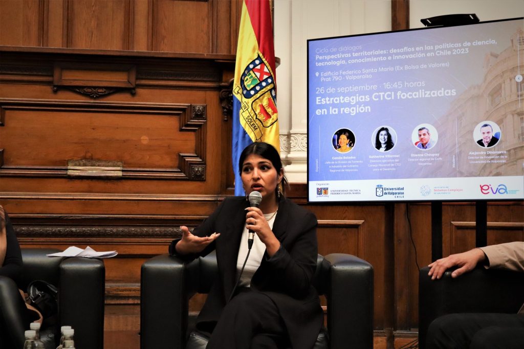 Además, la académica de la USM recalcó la importancia de los ciclos CTCI como instancia de debate sobre la realidad local. “El objetivo de estos diálogos es reunir a académicos, profesionales, emprendedores, representantes del sector público y privado de la región de Valparaíso, para reflexionar sobre los desafíos y oportunidades que representa el tener un ecosistema de CTCI de naturaleza compleja”, aseveró, agregando que “se articulan diversos ministerios, instituciones de educación superior, agencias gubernamentales y se originan las políticas para el área de CTCI y de las cuales resultan los insumos necesarios para el diseño y la implementación de estrategias regionales”.