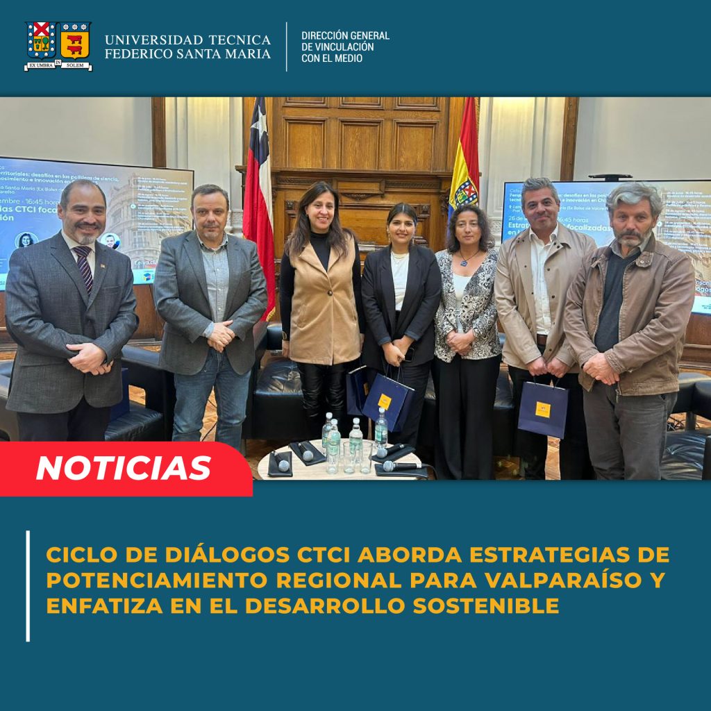 Potenciar las políticas regionales y el desarrollo sostenible en la región de Valparaíso fueron los principales temas abordados en la cuarta versión del Ciclo de diálogos CTCI “Estrategias CTCI focalizadas en la región” organizado por la Universidad Técnica Federico Santa María en colaboración con la Universidad de Valparaíso y que, en esta ocasión, se tituló “Estrategias CTCI focalizadas en la región”.