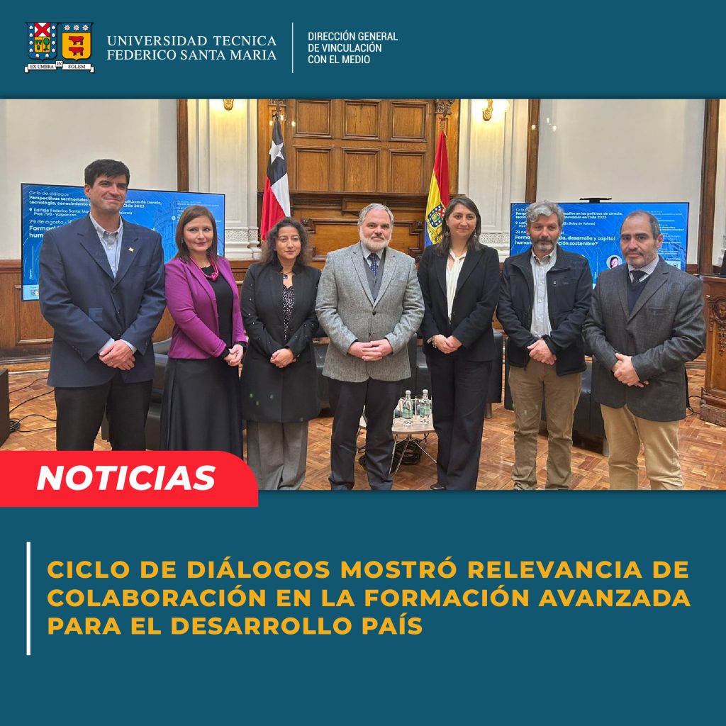 «Formación avanzada, desarrollo y capital humano, ¿una relación sostenible?» fue el nombre del tercer encuentro del Ciclo de Diálogos “Perspectivas territoriales: desafíos en las políticas de ciencia, tecnología, conocimiento e innovación en Chile 2023” que organiza la Universidad Técnica Federico Santa María en conjunto con la Universidad de Valparaíso, el Instituto de Sistemas Complejos de Valparaíso y el Ecosistema de Emprendimiento e Innovación de Valparaíso (EIVA) y que cuenta con el apoyo del Centro de Extensión del Senado y el Consejo de Rectores de Valparaíso.