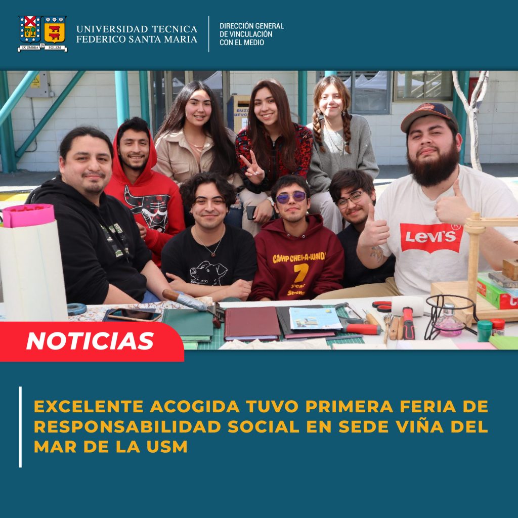 Con una importante participación de la comunidad universitaria, se llevó a cabo la primera Feria de Responsabilidad Social, realizada en el patio central de la sede Viña del Mar de la USM. La actividad, organizada por la Dirección de Relaciones Estudiantiles, reunió a las agrupaciones estudiantiles Ecosansano JMC, CEMPerrunos -dedicada al cuidado y tenencia responsable de mascotas- FabLab, Taller de Encuadernación y Proyecto Bela, además de los monitores de Punto de Encuentro, quienes promovieron la gestión del riesgo en el consumo de sustancias y la prevención de VIH/SIDA, a través de los programas Consciente y Alerta. Igualmente, se hicieron presentes las carreras que resultaron ganadoras de fondos de Responsabilidad Social Universitaria (RSU) de la Dirección de Vinculación con el Medio.