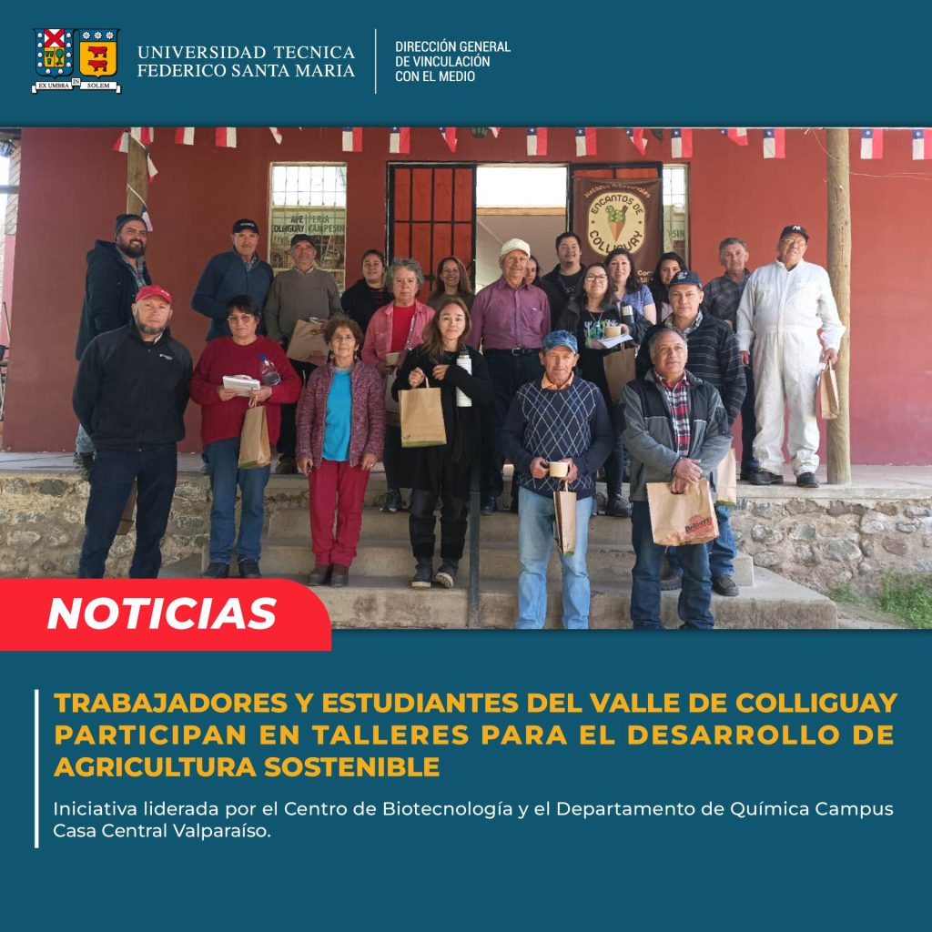 El pasado 28 de septiembre, docentes, estudiantes y representantes de la Dirección General de Vinculación con el Medio de la Universidad Técnica Federico Santa María visitaron la localidad de Colliguay -valle ubicado a una hora de la ciudad de Quilpué- con el propósito de participar en talleres sobre el desarrollo de agricultura sustentable y agroecológica con la comunidad de agricultores y alumnos de la Escuela Básica G 433 Delfina Álvarez.